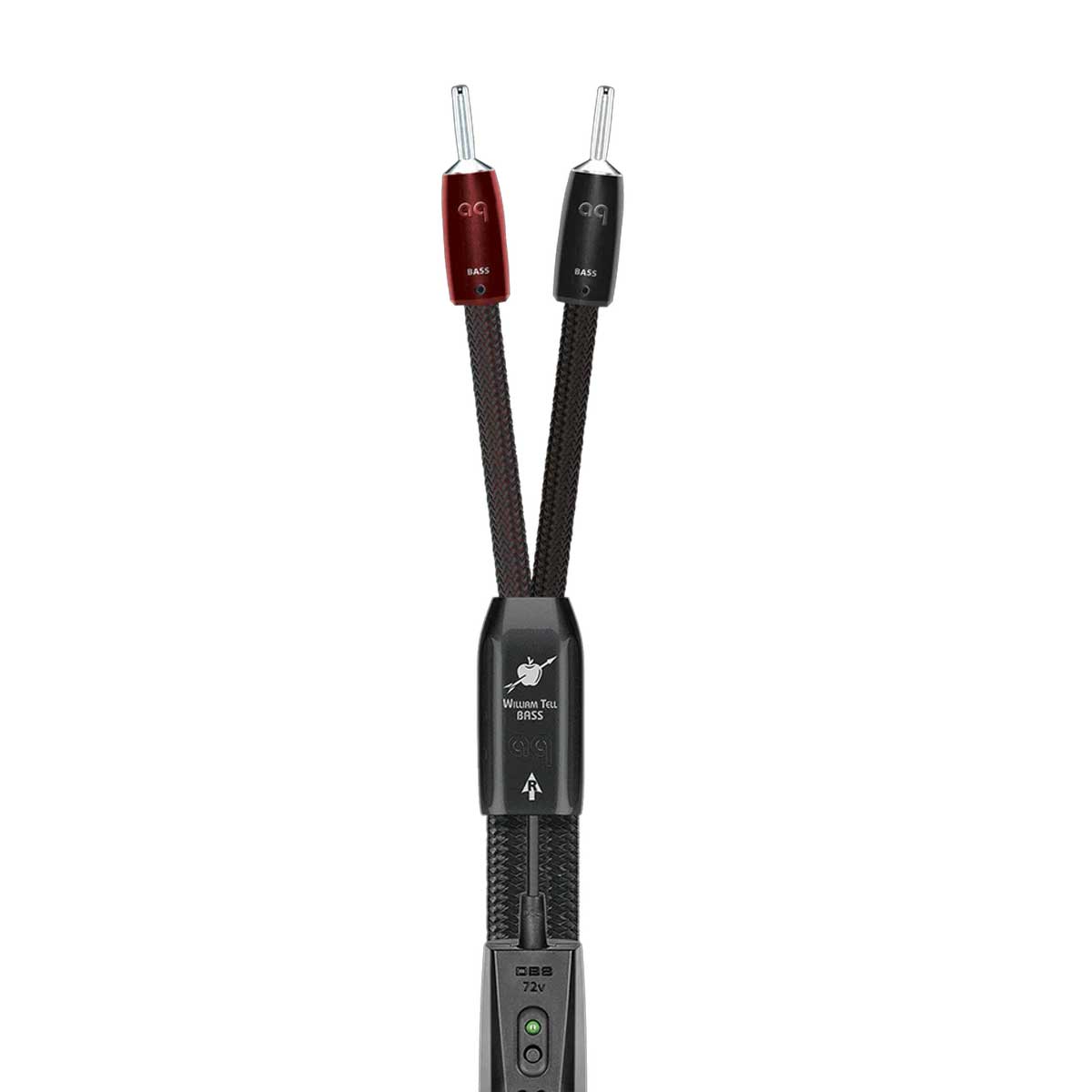 The AudioQuest William Tell BASS Speaker Cable with RF/ND-Tech is an ideal cable for the Bass and Midrange inputs of either a BiWireable or TriWireable loudspeaker when used in combination with William Tell ZERO or William Tell SILVER Full-Range cables.