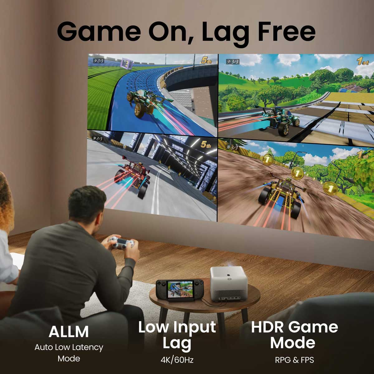 TK705STi is the only projector in its class with USB-C (up to 30W) charging, letting you power your device while you play. No breaks, no dead batteries.