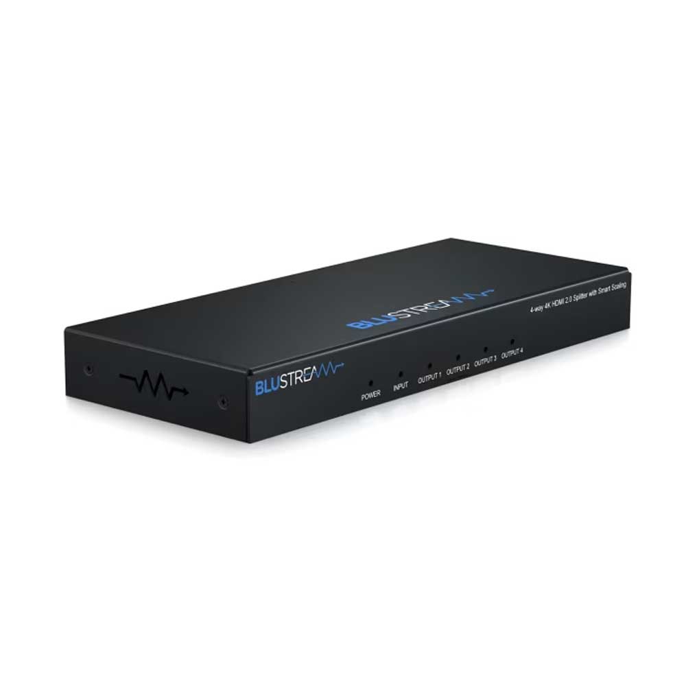 The Blustream SP14CS 4-Way 4K HDMI 2.0 HDCP 2.2 Splitter distributes a single HDMI source to four simultaneous outputs with both digital (S/PDIF) and analogue audio breakout.