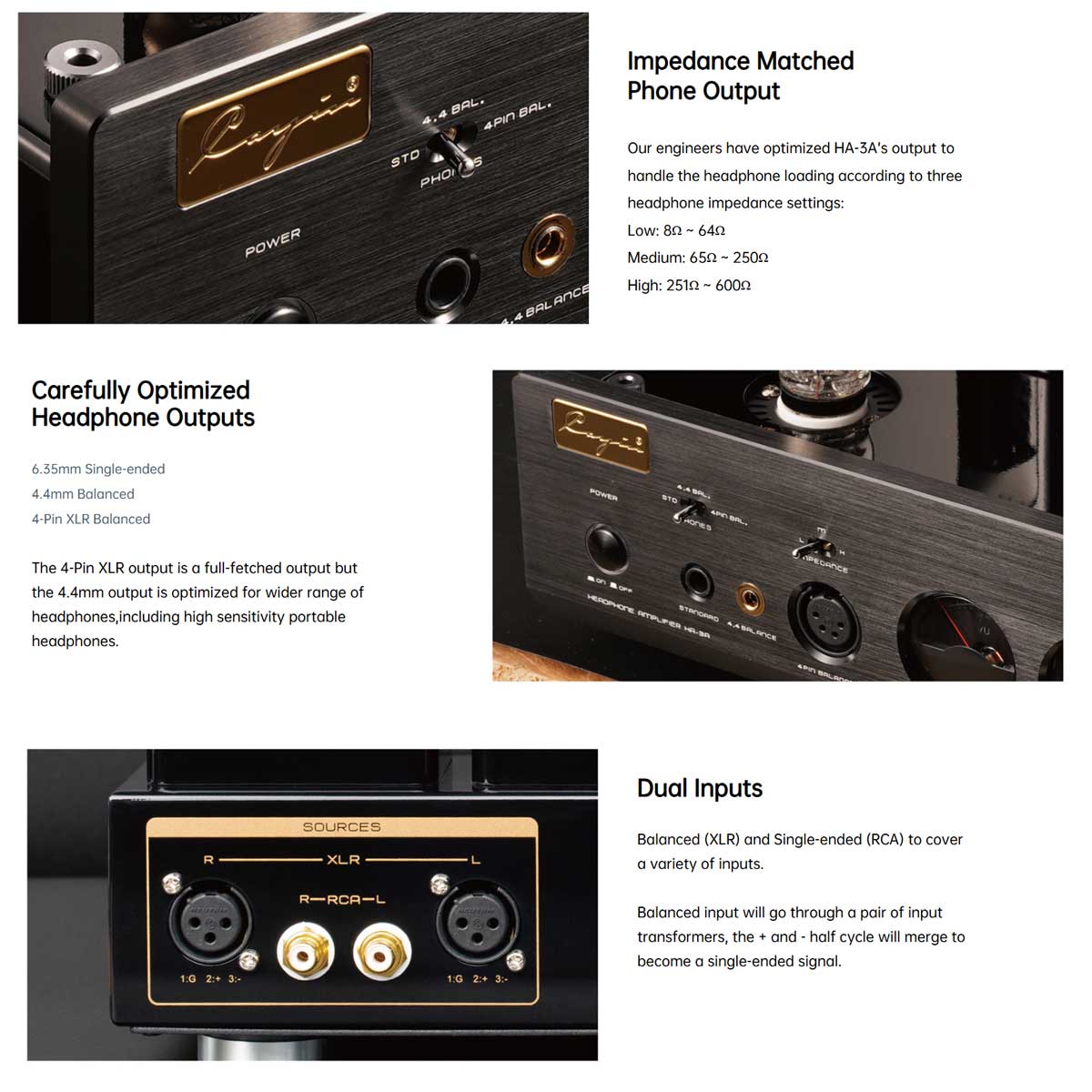 It includes 4.4mm balanced and 4-pin XLR balanced headphone outputs, along with a 6.35mm single-ended output. - What type of headphones pair best with the HA-3A?|
