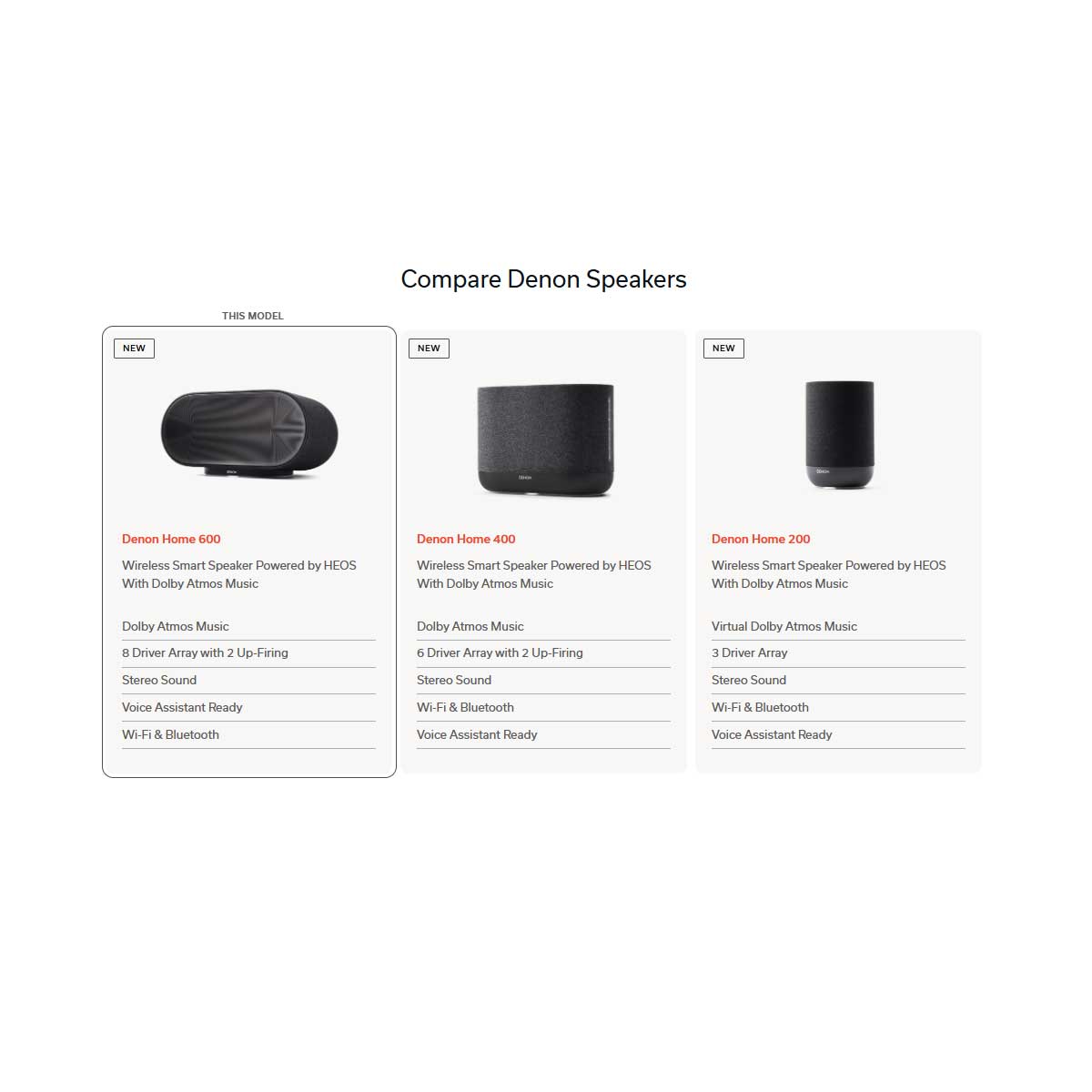 The Home 600 sits above the Home 200 and Home 400 in the current Denon Home lineup and is the most advanced and most powerful model in the range. It adds an eight-driver array, built-in subwoofers, and Dolby Atmos Music support, making it the best choice for customers who want the biggest sound from a single Denon wireless speaker. - How big is the Denon Home 600, and what is the correct weight?