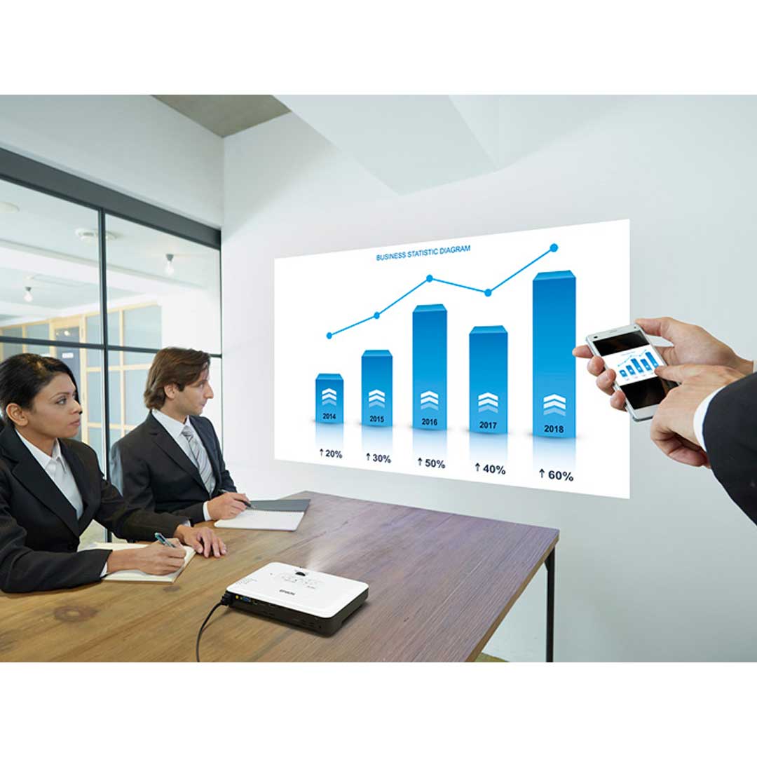 Weighing just 1.8 kg and offering 3,200 lumens of brightness, it delivers crisp, vibrant images even in well-lit meeting rooms or client offices. Its ultra-portable design fits easily into a laptop bag, making it ideal for sales teams, consultants, trainers, and business travellers who require reliable, on-the-spot presentation capability without bulky equipment.