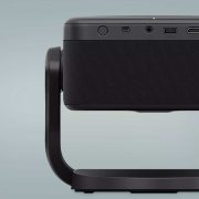 This compact projector comes in metallic black and with the adjustable built-in stand, images can be projected in any direction – on a wall, ceiling or floor. The simple usability, setup and portability means you can enjoy entertainment on the go.