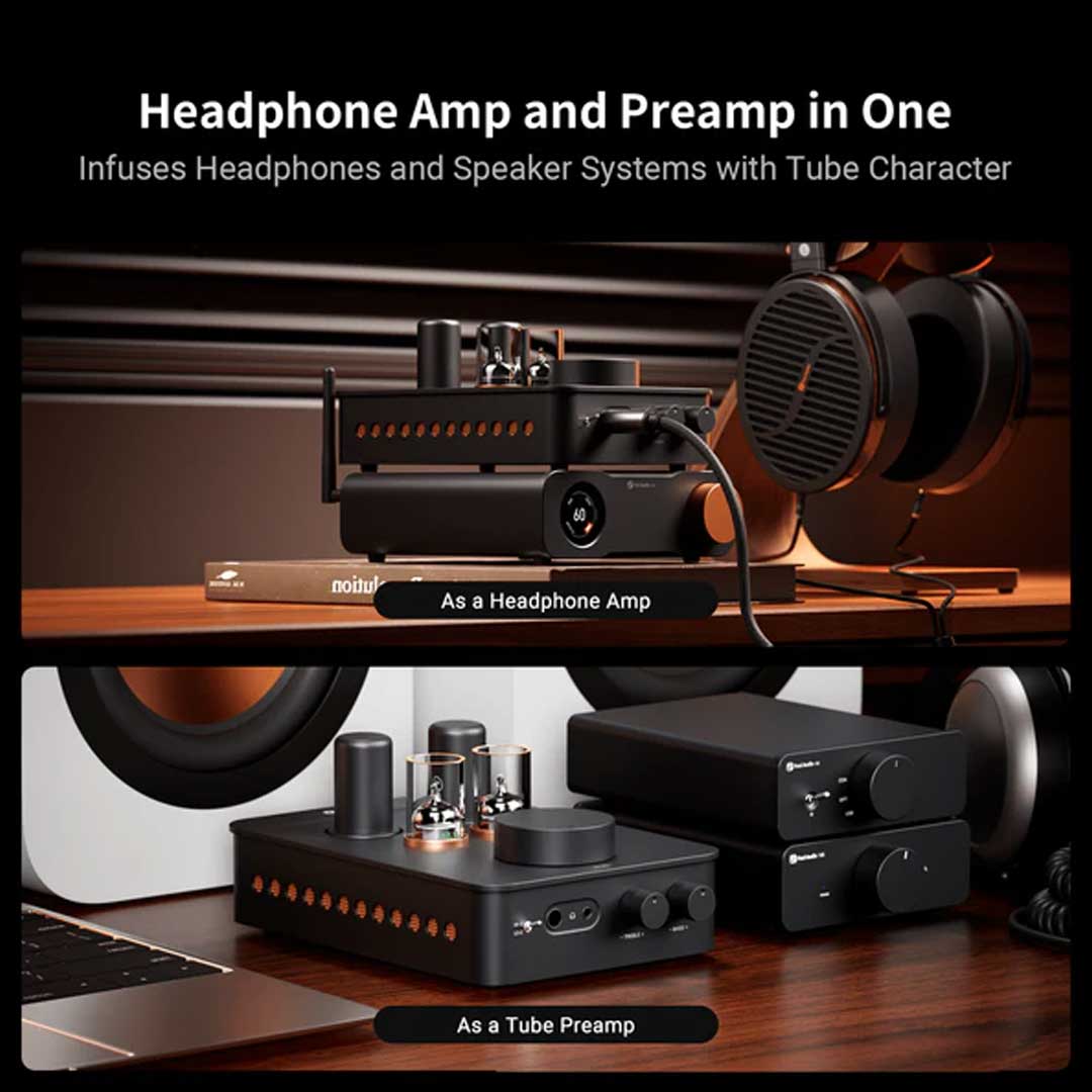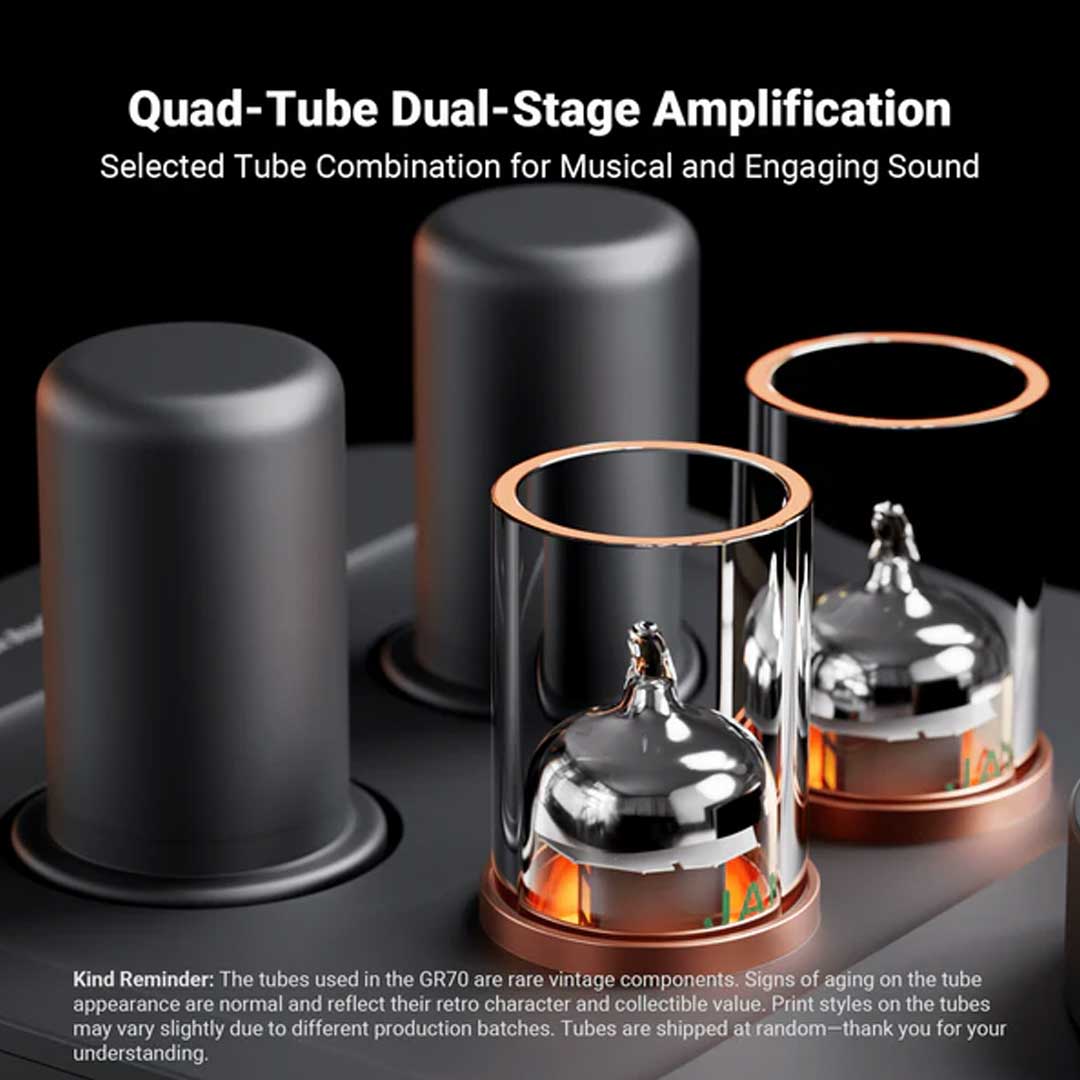 - Pure Tube-Amplification: The GR70 headphone tube amp combines vintage charm with modern tech, delivering authentic tube essence. Perfect for headphone enthusiasts, it pairs excellently with over-ear and in-ear headphones for superior audio
