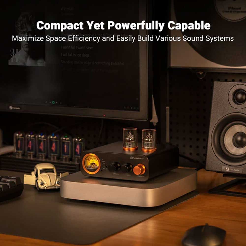 Its compact design and intuitive controls make it perfect for elevating music playback in desktop and home audio setups.