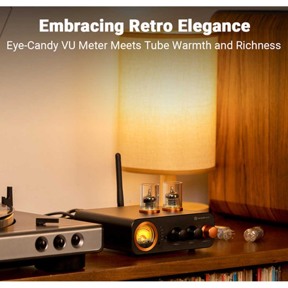 As an integrated tube DAC amp with a VU meter, the visual aesthetics of the 5654W vacuum tubes and VU meter add a nice warm and soft effect to not only the appearance but the sound as well, giving the modern look a retro feel.