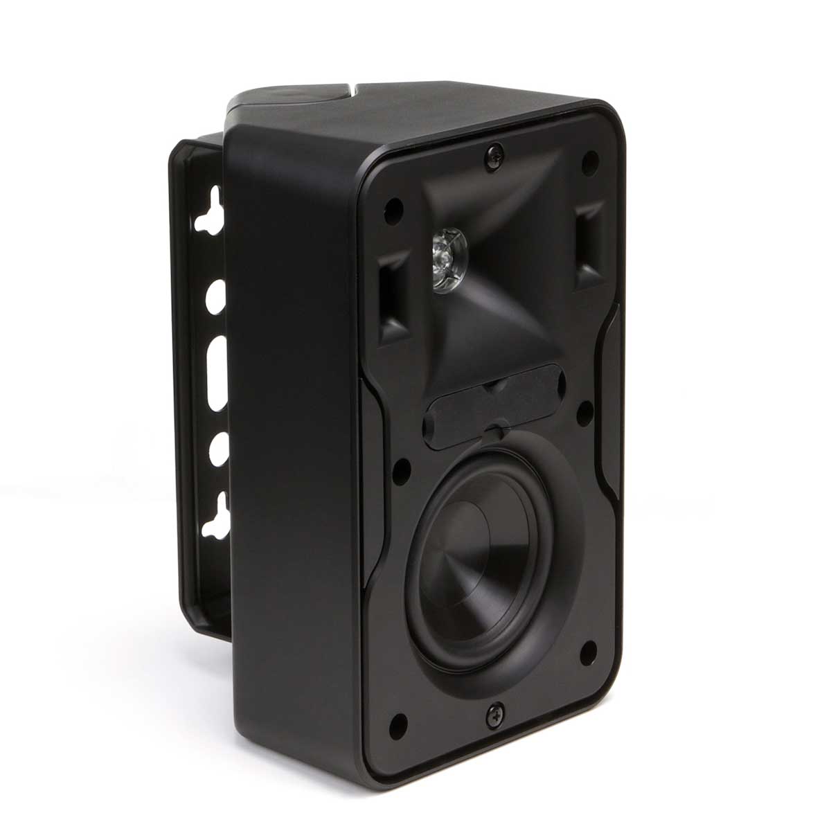 The Klipsch CP-4T Outdoor Speakers have the exclusive Tractrix® Horn technology that combines with a premium, long-throw woofer for an amazing full-range sound that contradicts its diminutive size. The new bracket design combined with front-access speaker terminals assures a clean, easy, one-screwdriver installation with the ability to tuck close in a corner for a custom look.