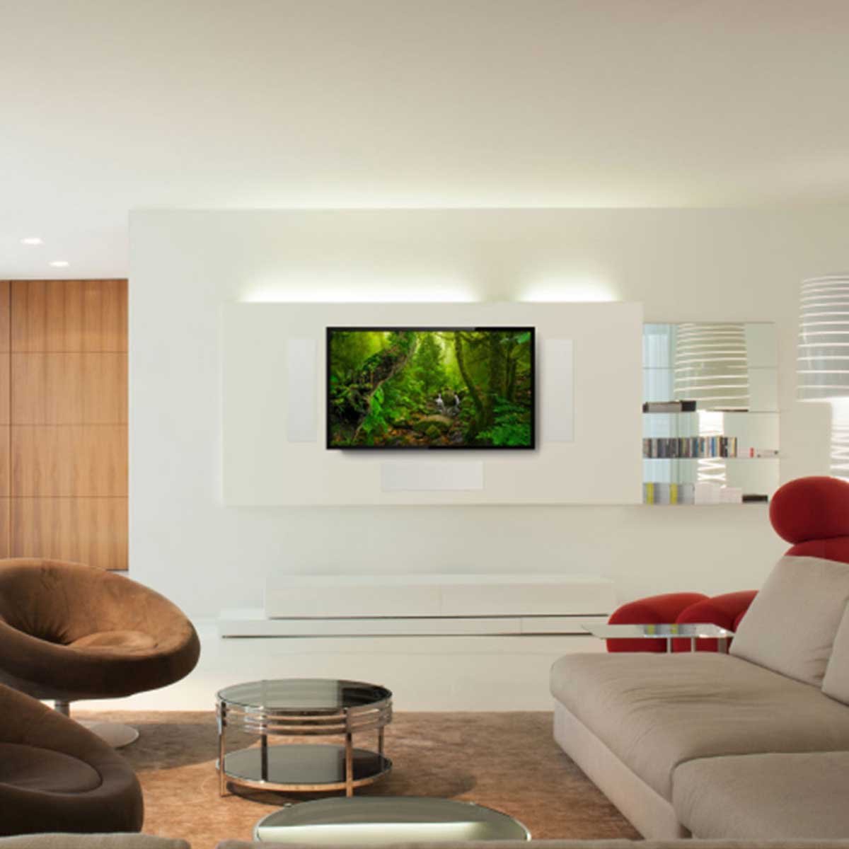 Flush in-wall installation provides a clean, discreet aesthetic while maintaining high-performance sound.