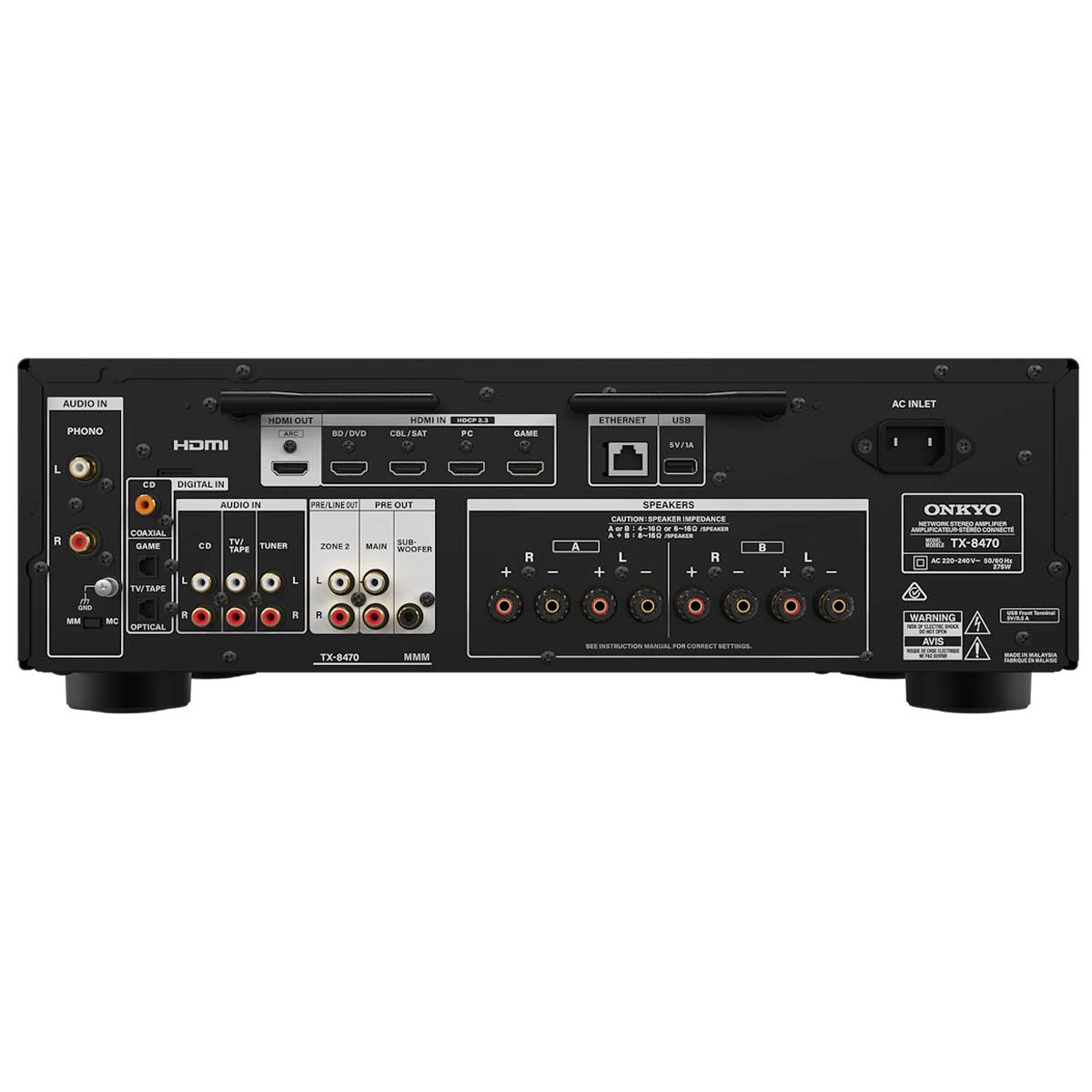 - Can the TX-8470 be used with a TV? It features HDMI inputs and output with ARC, allowing easy connection to a TV while maintaining high-quality stereo sound.