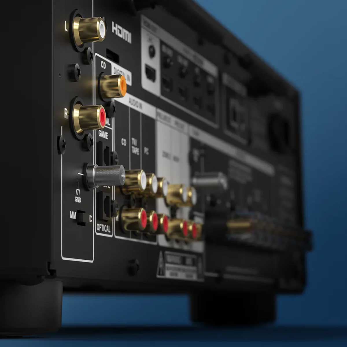 With a two-channel stereo receiver – instead of a larger audio video receiver (AVR) – amplifier design and components are meticulously optimized for more focused and refined audio output. Case in point: A gold-plated terminal and audio-grade capacitors provide clean sound, while our dedicated-design amplifier supports a high current drive and maximizes your loudspeaker performance, resulting in superior sound reproduction and a richer listening experience.