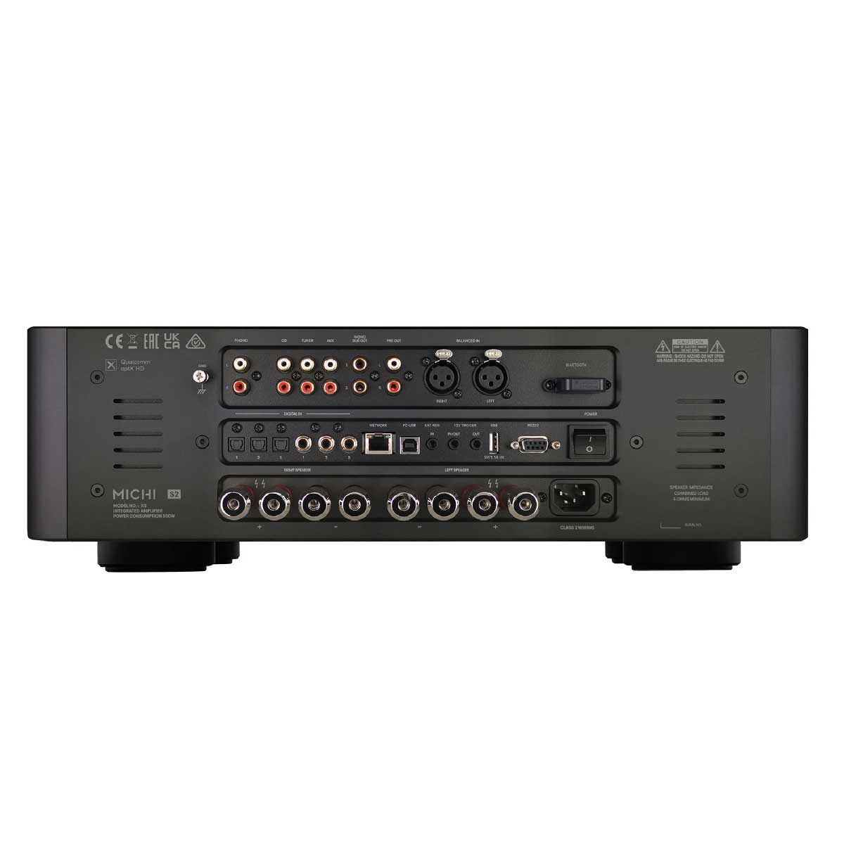 The elegant industrial design of the Michi X3 Series 2 fits comfortably in any living space while still producing a robust 350 watts into 4 ohms or 200 watts into 8 ohms from your favourite music sources including Analogue RCA and XLR Balanced, Moving Magnet Phono, aptXTM HD Wireless Bluetooth, Coaxial, and Optical.