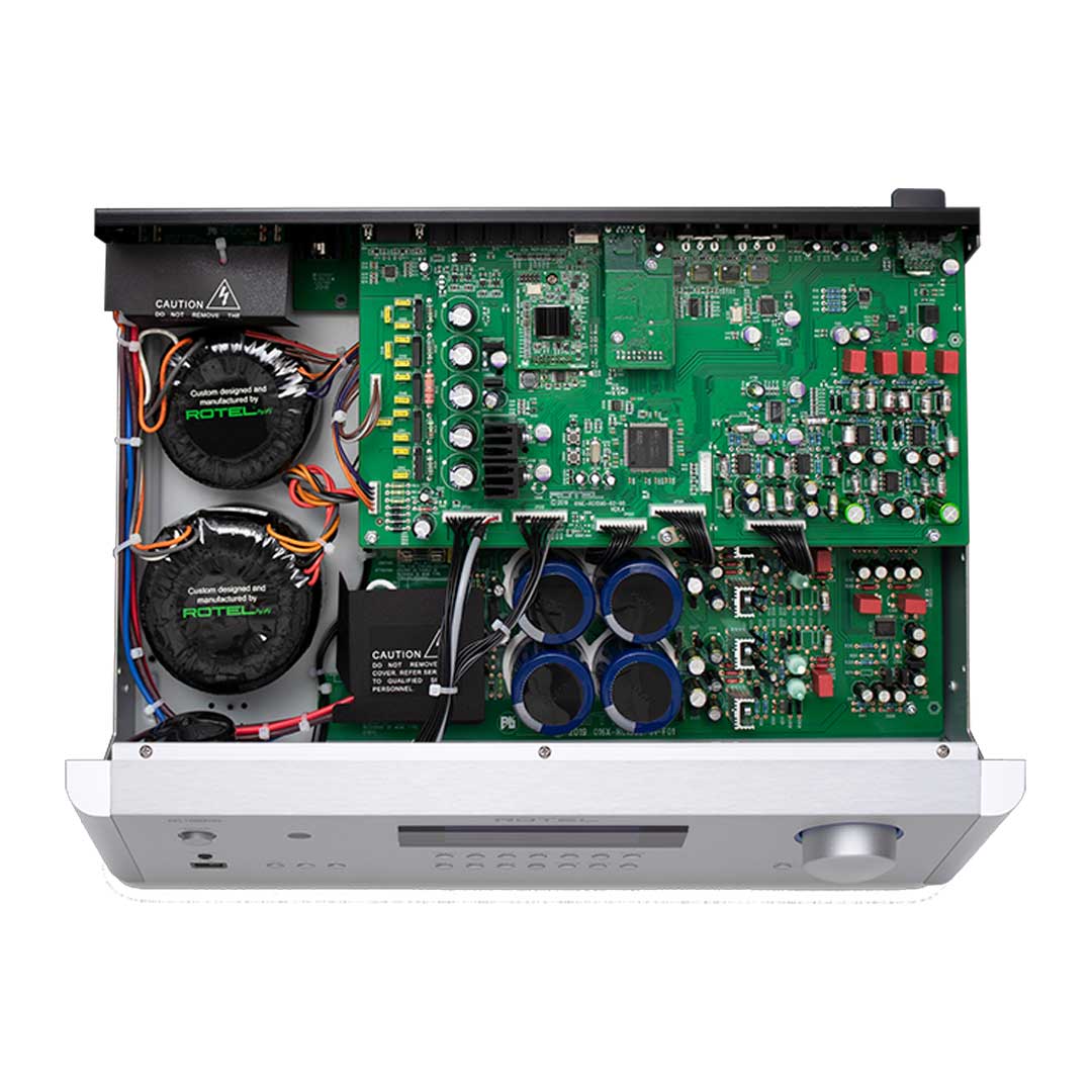 The heart of the Rotel RC-1590 MKII Stereo Preamplifier begins with the power supply featuring dual in-house manufacture toroidal transformers. The transformers are physically and electrically isolated supplying dedicated analog and digital supply voltages to all critical circuits through low ESR slit-foil capacitors eliminating unwanted distortion and an extremely low noise floor.