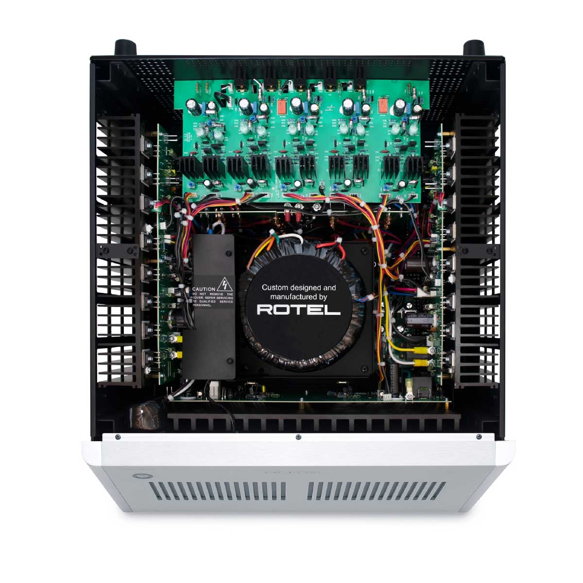 The RMB-1585MKII delivers unparalleled performance with 5-channels of Rotel Class AB amplification rated at 210 Watts per channel into 8 ohms and an impressive 340 Watts per channel into 4 ohms with all channels driven.