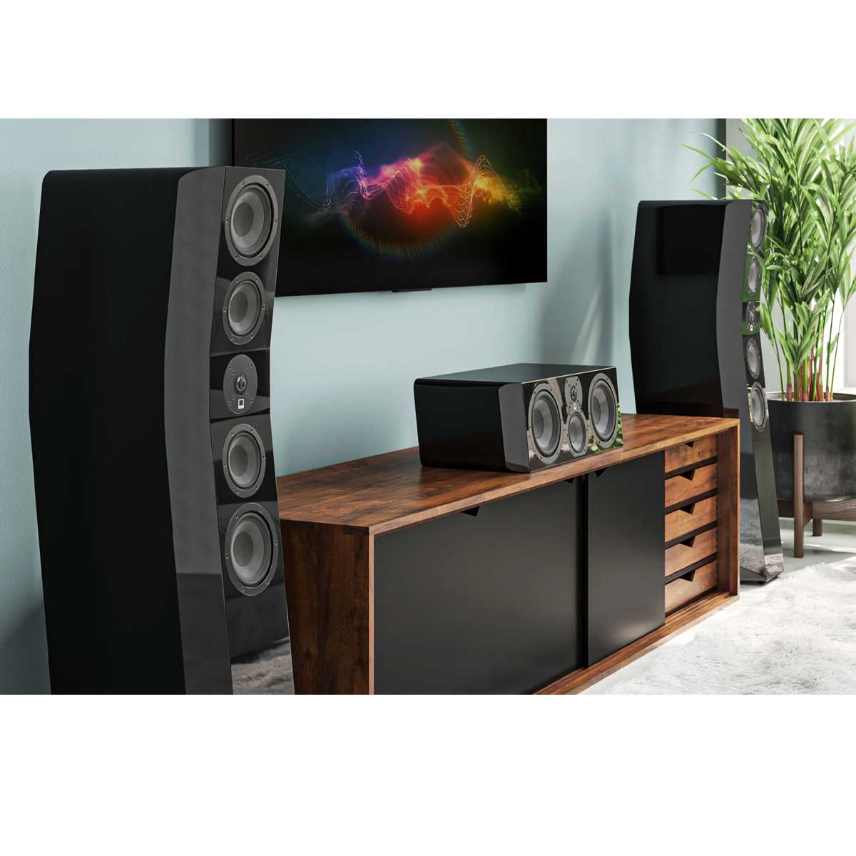 Never has this fusion of design elements existed in a single speaker. Acoustically centered time alignment, diamond coated aluminum dome tweeters, force balanced woofer array, and other advancements embody an uncompromising approach to floorstanding speaker design.