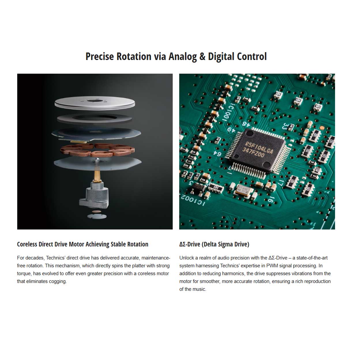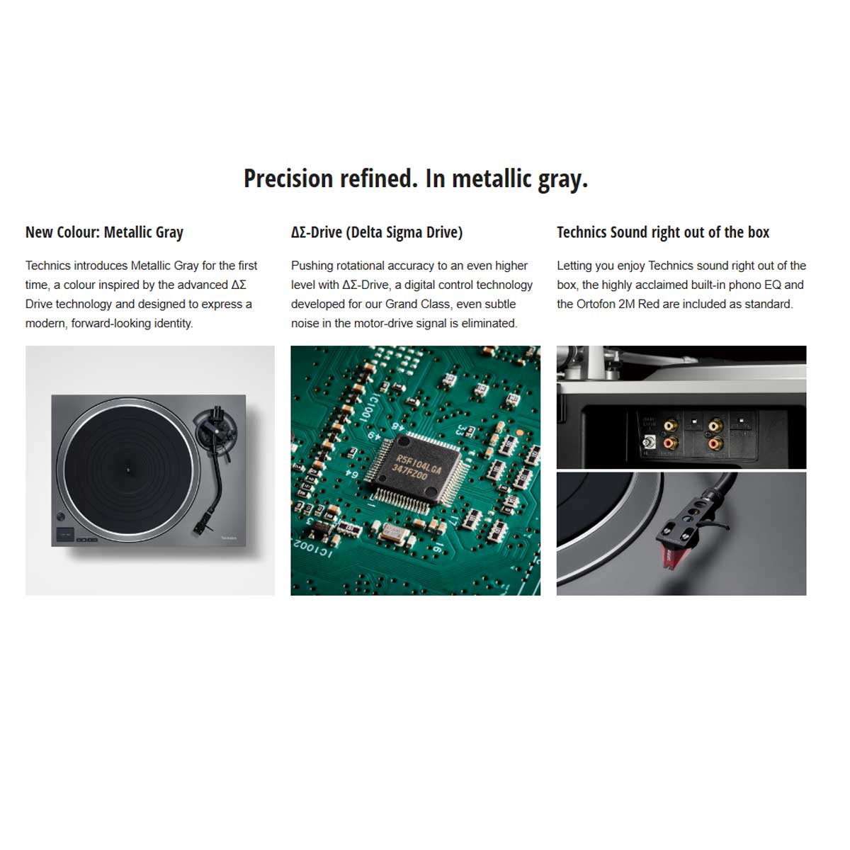 Technics’ advanced ΔΣ-Drive motor control system reduces vibration and improves rotational precision, bringing technology from higher-end Technics turntables into this model.