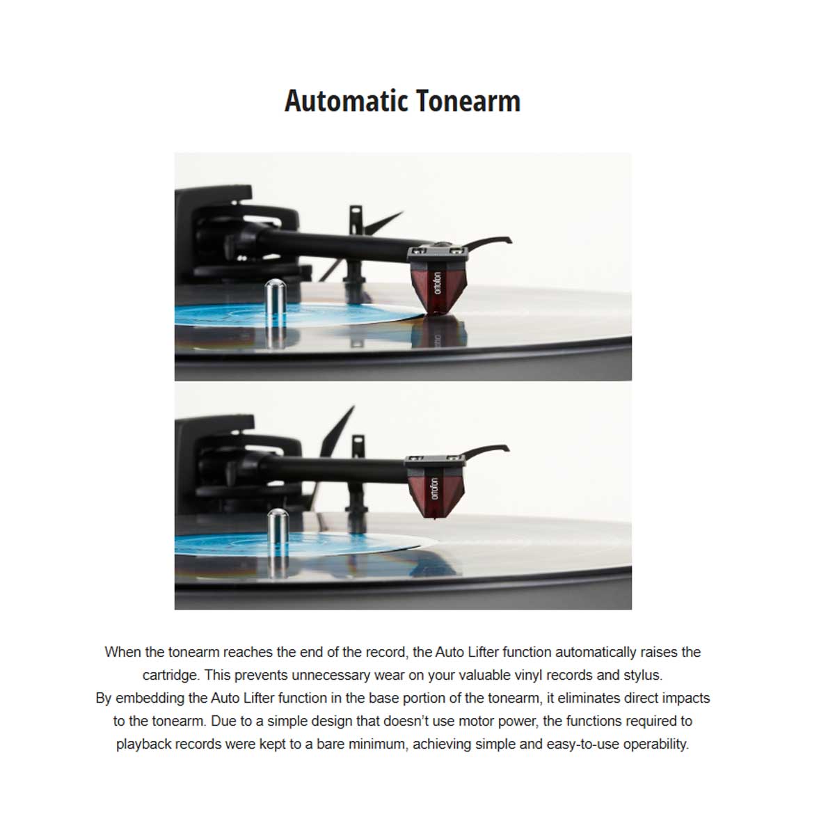 The auto-lift function raises the tonearm at the end of a record, helping protect both stylus and vinyl from unnecessary wear.