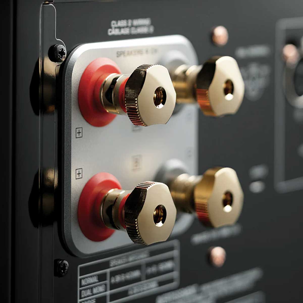 The M-5000 utilises oversized, screw-type speaker terminals to ensure ease-of-use and a secure connection. Cut from a pure brass block, the original Yamaha design denotes a meticulous attention to detail and premier quality.